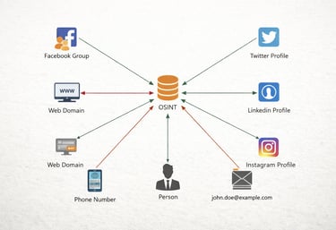 Eine OSINT-Recherche (Open Source Intelligence) ist die systematische Auswertung öffentlich zugänglicher Informationen – z. B. aus Websites, Medienberichten, Registern, Social Media oder frei verfügbaren Datenbanken.